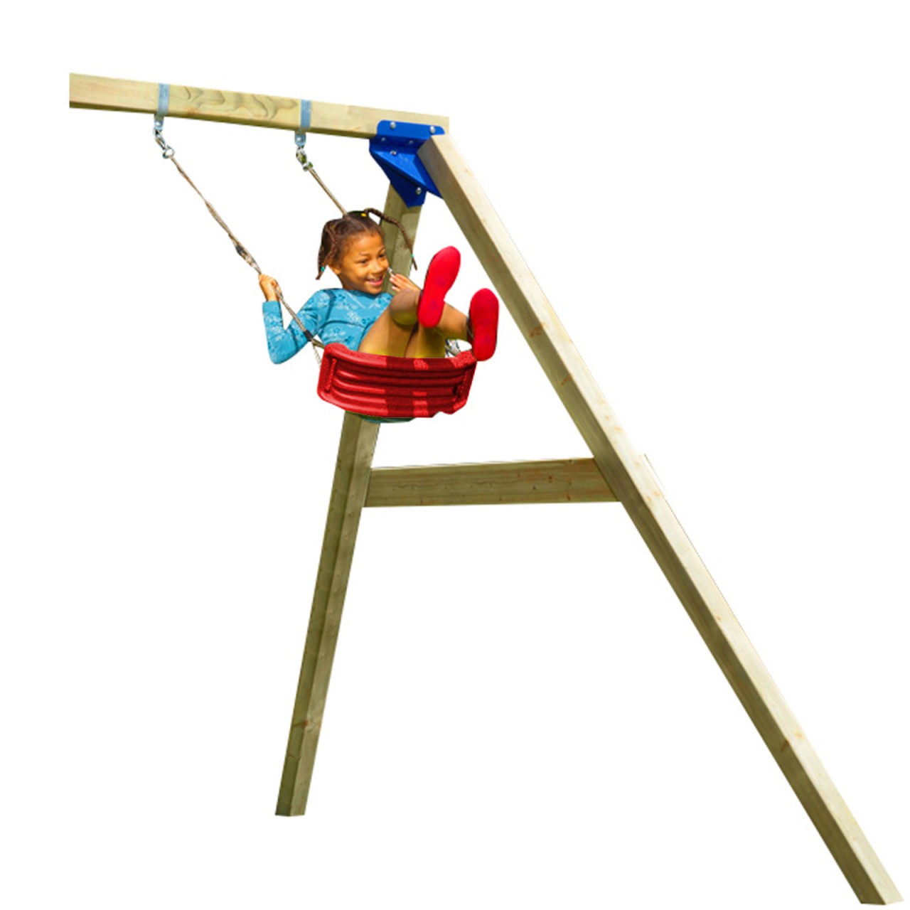 Für noch mehr Spaß auf dem Spielturm Mit dem Anbaumodul Schaukel @SWING SINGLE bringen Sie noch mehr Freude in Ihren Garten. Hier müssen Sie sich nicht zwischen einem Spielturm und einer frei stehenden Schaukelanlage entscheiden, sondern können die Optionen verbinden. So sparen Sie sich Platz im Garten und können Ihren Kindern ein abwechslungsreiches Spielen im Freien ermöglichen. Der einmalige Vorteil dieser Anbauschaukel ist die Höhe. Abmessungen des Anbaumodul Schaukel @Swing Single 1,35 m: Maße (B x T x H): 1,58 x 2,80 x 2,08 m Sicherheitsabstand: 2 m Robuste Anbauschaukel mit einem Sitz Mit dem Anbaumodul Schaukel @SWING SINGLE können Sie jeden Spielturm erweitern. Der Anbau hat eine Breite von 1,35 m und bietet Platz zum ausgelassenen Schaukeln. Hier erhalten Sie einen Bausatz und ein Holzpaket , womit Sie Ihren Spielturm um eine weitere Attraktion bereichern können. Lieferumfang zum Anbaumodul Schaukel @SWING SINGLE: 1 Bausatz Schaukelanbau @SWING SINGLE , 2 Grundanker, 1 Schraubenpaket, 3 Verbindungsbeschläge, 2 Schaukelschellen vierkant aus feuerverzinktem Stahl mit Karabiner 1 Premium Holzpaket @SWING SINGLE , KIEFER kesseldruckimprägniert 1 Schaukelsitz mit Seil aus HDPE Rot, Belastbarkeit: 70 kg Anbaumodul Schaukel @SWING SINGLE: robust und sicher Das Anbaumodul Schaukel @SWING SINGLE besteht aus hochwertigem Kiefernholz und robustem Kunststoff. Das Material wird sorgfältig verarbeitet und behandelt, sodass kein weiterer Anstrich nötig ist. Hier erhalten Sie ein robustes und langlebiges Spielgerät, an dem Ihre Kinder lange Freude haben. Die Anbauschaukel lässt sich fest und sicher mit dem Spielturm verbinden und ist leicht zu montieren. Überraschen Sie Ihre Kinder mit einer neuen Attraktion für den Garten mit dem Anbaumodul Schaukel @SWING SINGLE .
