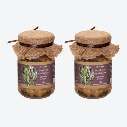 Hocharomatische violette Artischocken In Sizilien sonnengereift Al dente gegrillt mit feinen Röstaromen Abgeschmeckt mit Oregano, Knoblauch, Petersilie und einem Hauch Chili In kalt gepresstem Sonnenblumenöl haltbar gemacht Als Antipasti pur oder in Salaten genießen Kleine dunkelviolette Artischocken sind gegenüber anderen Sorten wunderbar aromatisch Unter sizilianischer Sonne gereift, werden sie als zarte junge Blütenstände geerntet und mit großer Sorgfalt von Hand geschält Vorsichtig al dente gegrillt bereichern sie feinste Röstaromen Geviertelt machen wir sie in unserer Delikatessmanufaktur mit wenig Salz, Oregano, Knoblauch, Petersilie und einem Hauch Chili in kalt gepresstem Sonnenblumenöl haltbar Genießen Sie diese Feinschmecker Delikatesse pur als Antipasti oder als warme Vorspeise mit kurz gebratenen Garnelen, frischem Knoblauch und Petersilie Vorzüglich sind sie auch in Salaten, zum Beispiel mit weißem Thunfisch und dicken weißen Bohnen (Rezepte wwwhagengrotede).