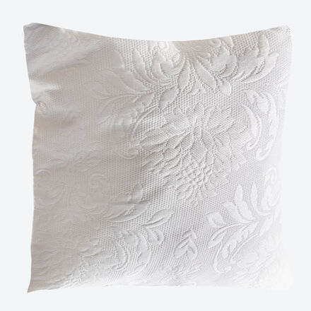 Hochwertige Matelassé-Kissenhülle Aufwendig jacquardgewebt Dekorative Ton-in-Ton-Reliefoptik Schwere, voluminöse Qualität Schützt empfindliche Oberflächen Die naturweiße Tischwäsche aus kunstvoll gefertigtem Matelassé steht für zeitlose Eleganz. In aufwendiger Jacquard-Webtechnik entsteht ein hochwertiges Doppelgewebe, dessen exklusives florales Dekor sich reliefartig vom Untergrund abhebt. Neben ihrer dekorativen Optik zeichnet sich die Ton in Ton gemusterte Kissenhülle der Kollektion durch eine voluminöse, schwere Qualität aus. Schließlich bedeutet die französische Bezeichnung „Matelassé“ so viel wie „gepolstert“. Veredelt und schützt empfindliche Oberflächen. Hochwertige Atelierverarbeitung mit Couvertsaum. 73 % Baumwolle, 27 % Polyester, Reißverschluss, waschbar bei 30 °C.