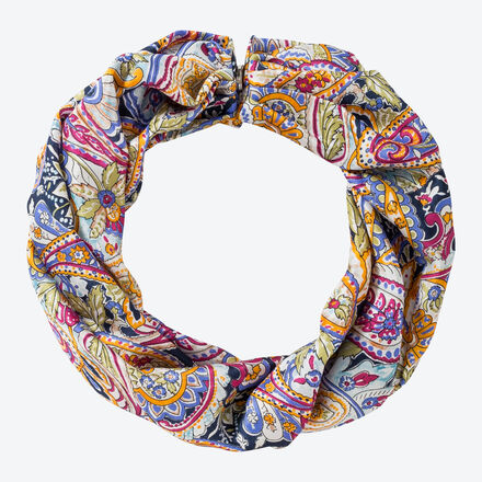 Das elegante Paisley-Dekor kommt auf der reinen, glänzenden italienischen Seide, einer der feinsten und edelsten Naturfasern, wunderschön zur Geltung. Ein kleiner Magnetverschluss sorgt ohne sich öffnende oder auftragende Knoten für perfekten Sitz und richtigen Halt. So legt sich der Schal sanft wie ein Lufthauch um Ihren Hals. Das elegante Accessoire ergänzt stilvoll Blazer, Blusen oder Pullover. 100 % Seide, 20 x 70 cm, Magnetverschluss nickelfrei. Chemische Reinigung.