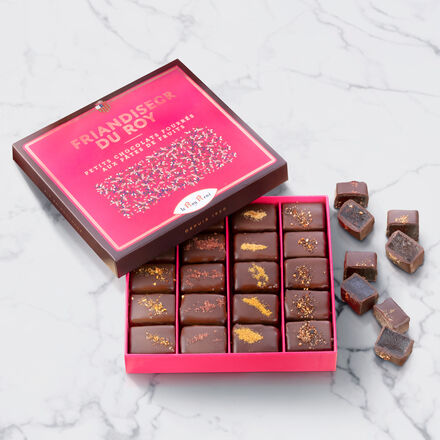 Hoher Fruchtanteil (50 %) Fruchtgelee aus Aprikosen, Himbeeren, Clementinen und Feigen Umhüllt von feinster Schokolade Rein natürliche Zutaten Feinste Schokolade aus Madagaskar (Kakaoanteil min. 70 %) umhüllt wunderbar weiches Fruchtgelee aus frischen Aprikosen, Himbeeren, Clementinen und Feigen. In sorgsamer Handarbeit entstehen sie in einer seit 1920 bestehenden Manufaktur in Aix-en-Provence, die überwiegend regionales Obst verwendet. Das ist Patissier-Kunst vom Feinsten für verwöhnte Gaumen. Hoher Fruchtanteil (50 %), rein natürliche Zutaten, ohne jegliche Farb- und Konservierungsstoffe.