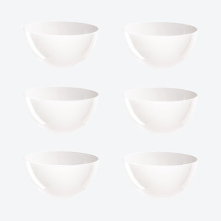 Langlebig und robust Brillanter Glanz Mikrowellengeeignet Spülmaschinenfest Zurückhaltende Eleganz und edle Schlichtheit zeichnen dieses stilvolle Geschirr aus. Fine Bone China gilt seit vielen Jahrhunderten als höchste Kunst der chinesischen Porzellanherstellung. Diese besonders durchscheinende Art des Knochenporzellans besticht durch strahlendes Weiß mit brillantem Glanz. Klar, dezent und edel decken Sie damit repräsentative Tische für feine Gerichte ein. Fine Bone China Porzellan, Ø 15 cm, 7 cm hoch, 500 ml Inhalt, stapelbar, mikrowellengeeignet und spülmaschinenfest.