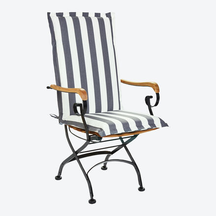 Wasserfest imprägniert UV-Schutz Bequemer Sitzkomfort Die weiche, hautfreundliche und atmungsaktive Oberfläche dieser Stuhlkissen sorgt für angenehmen Sitzkomfort. Die Teflon-Imprägnierung schützt das Gewebe vor Feuchtigkeit und Schmutz und verhindert das Eindringen in die Fasern. Auch bei starker, direkter Sonneneinstrahlung bleibt die brillante Farbigkeit dank UV-Schutzfaktor erhalten. Die komfortablen Polster passen auf alle gängigen Gartenstühle mit hoher Rückenlehne. Verstärkte Zugbänder halten Sie dabei sicher in Position. 100 % Polyacryl, 6-cm-Schaumstoffkern ummantelt mit Fleecewatte (300 g/m²), hoch 120 x 50 cm, Öko-Tex Standard 100, 3 cm Stehsaum. Bezug abziehbar, Maschinenwäsche 40 °C.