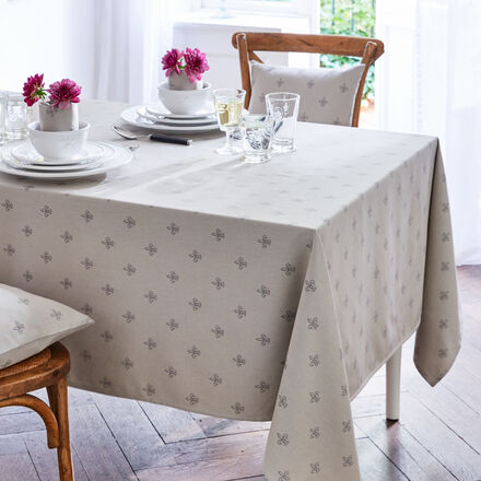 Die heraldische Lilie, auch „Fleur de Lis“ genannt, ist seit jeher das Symbol der französischen Monarchie. Das majestätische Wappenzeichen ziert im dezenten Rapport den feinen Damast dieser erstklassig verarbeiteten Tischwäsche. In strapazierfähiger Atlasbindung ins edel glänzende Gewebe eingearbeitet adelt das abstrakt f lorale Dekor auch Ihre festlich gedeckte Tafel. 100 % Baumwolle, Maschinenwäsche 60 °C. Sondergrößen auf Anfrage möglich.