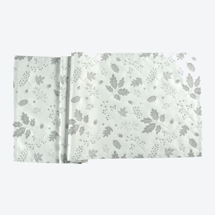 Festlicher Weihnachts-Tischläufer Eingewebtes Blattmuster mit Glanzeffekt Passt zu vielem Geschirr Gehört zu einer mehrteiligen Serie Die jacquardgewebte Tischwäsche strahlt festliche Eleganz aus. Das Allover-Blättermuster wird mit einem silbrig glänzenden Glanzgarn direkt in die weiße Tischwäsche eingewebt, das erzeugt einen edlen Glanz. Der Tischläufer Glanzeffekt ist eine klassische Basis für Ihre festliche Tafel in der Weihnachtszeit. Kombinieren Sie ihn mit den Tischsets (Nr. 114HD17) oder einer weißen Tischdecke. Bestellen Sie aus der Serie noch passende Servietten 2 Stück (Nr. 114HD16) und eine Tischdecke in 4 Formaten (Nr. 114HD19). 96 % Polyester 4 % Polyamid, Feinwäsche 40 °C. Made in Germany.