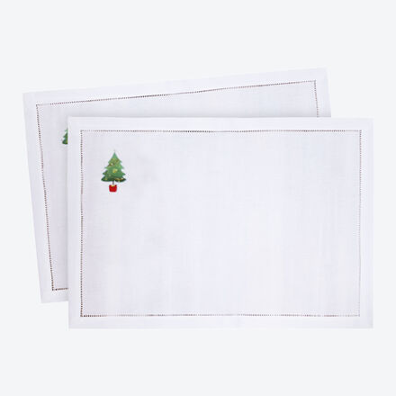 Wenige beherrschen noch heute diese kunstvolle, überaus aufwendige Handarbeitstechnik. Jedes Teil wird von erfahrenen Stickerinnen mit Liebe zum Detail voller Sorgfalt angefertigt. So genannter Plattstich, eine schon im Mittelalter verwendete Technik, wird für flächige Dar stellungen genutzt. Stielstich für Linien wirkt wie eine gedrehte Schnur. Unterschiedlicher Lichteinfall steigert die lebendige, plastische Wirkung. Bestickt wird elegantes, weich fließendes Gewebe aus langstapeliger Baumwolle, das ein Hohlsaum aus behutsam gezogenen Fäden ziert. Ein doppelt gelegter Saum mit diagonal angelegten Ecken in Couverttechnik schließt die hochwertige Tischsets ab. Jedes Stück ist ein von Hand gefertigtes Unikat. Tischsets nur mit Tannenbaum-Stickerei. 100 % Baumwolle, 160 g/m², Maschinenwäsche 30 °C.
