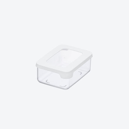 Aromageschützt luftdicht verschlossen Behälter und Deckel transparent Jederzeit alle Vorräte optimal im Blick Untereinander stapelbar Dank dieser transparenten Behälter haben Sie jetzt alle Vorräte ständig im Blick. Lebensmittelgerechte Spezialdichtungen in den luft- und wasserdicht schließenden, ebenfalls transparenten Deckeln bewahren appetitliche Frische. Untereinander stapelbar, alle Maße auf handelsübliche Packungsgrößen sowie auf Küchenschrank-, Schubladen-, Kühlschrankmaße abgestimmt. Aus hochwertigem, lebensmittelgerechtem Hartkunststoff, temperaturbeständig von -40 bis +90 °C, spülmaschinenfest. Größe XS : 12,5 x 9 x 5 cm (l/p/h), 0,35 l